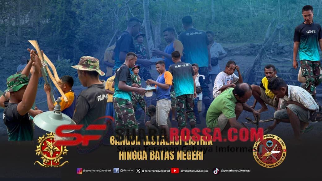 Sunsea – Satgas Pamtas RI-RDTL Sektor Barat Yonarhanud 2 Kostrad Pos Nelu tunjukkan komitmen untuk majukan perbatasan dengan membangun instalasi listrik dan lampu penerangan di Desa Sunsea, Kec. Naibenu, Kab. TTU. Minggu (30/11)