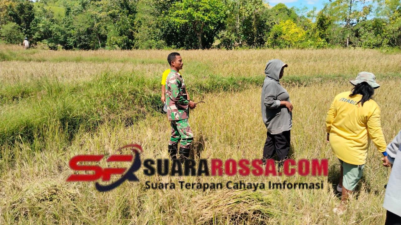 SUMBA BARAT — Babinsa Koramil 01/Loli Kodim 1613/Sumba Barat, Sertu Husni, melaksanakan pendampingan sekaligus membantu warga dalam kegiatan panen padi di Desa Malata, Kecamatan Tanarighu, Kabupaten Sumba Barat, Minggu (30/11/2025).