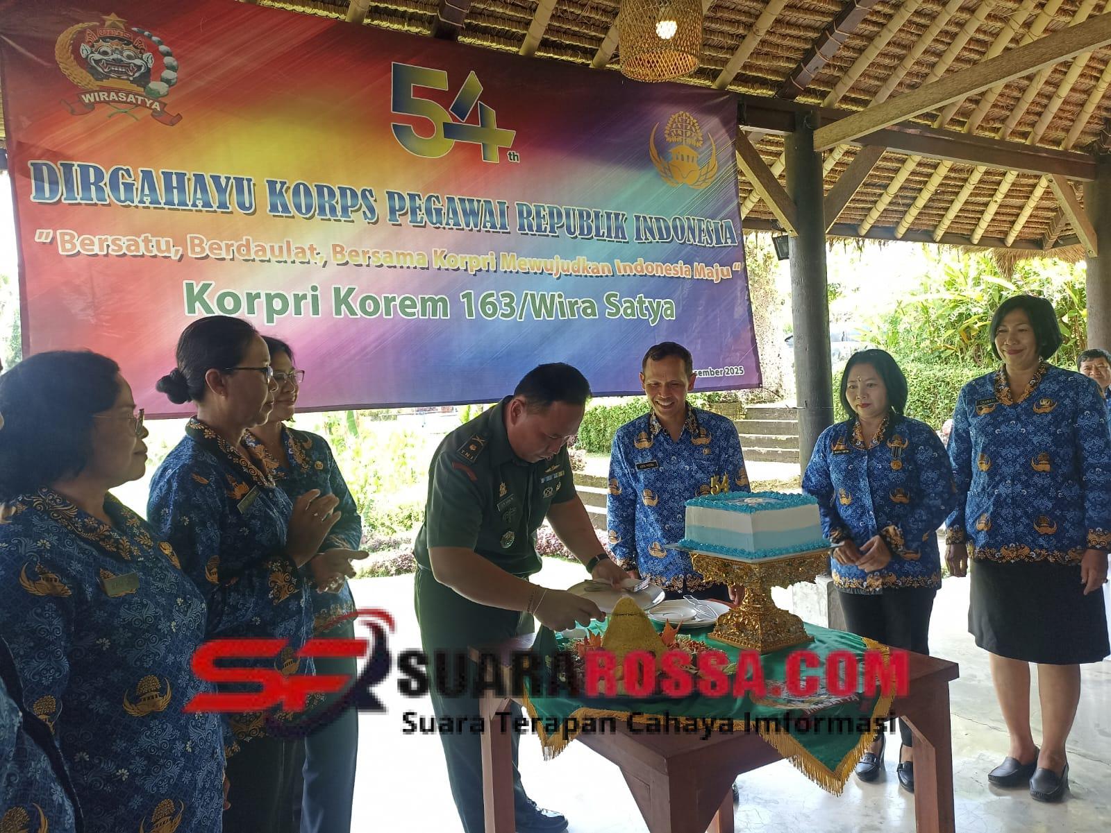 Klungkung,- Diwarnai pemotongan tumpeng HUT Korpri ke-54 oleh Ketua Korpri Korem 163/Wsa, kegiatan syukuran HUT ke-54 Korp Pegawai Republik Indonesia ( KORPRI ) Korem 163/Wsa TA 2025 digelar di Melangit Bali Adventures Banjar Kawan Dusun Kawan, Desa Bakas, Kecamatan Banjarangkan, Kabupaten Klungkung, Senin ( 01/12/25 ).