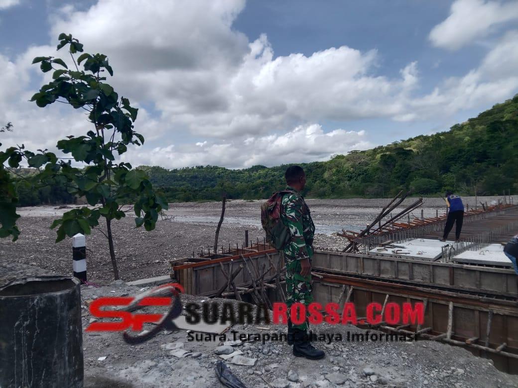 Kegiatan ini dilakukan untuk memastikan proses pembangunan jembatan yang sebelumnya ambruk beberapa bulan lalu dapat berjalan aman dan lancar. Dalam kesempatan tersebut, Babinsa juga memberikan imbauan langsung kepada para pekerja dan masyarakat sekitar agar tetap berhati-hati dan waspada terhadap potensi banjir yang kerap terjadi di Kali Noeleke.