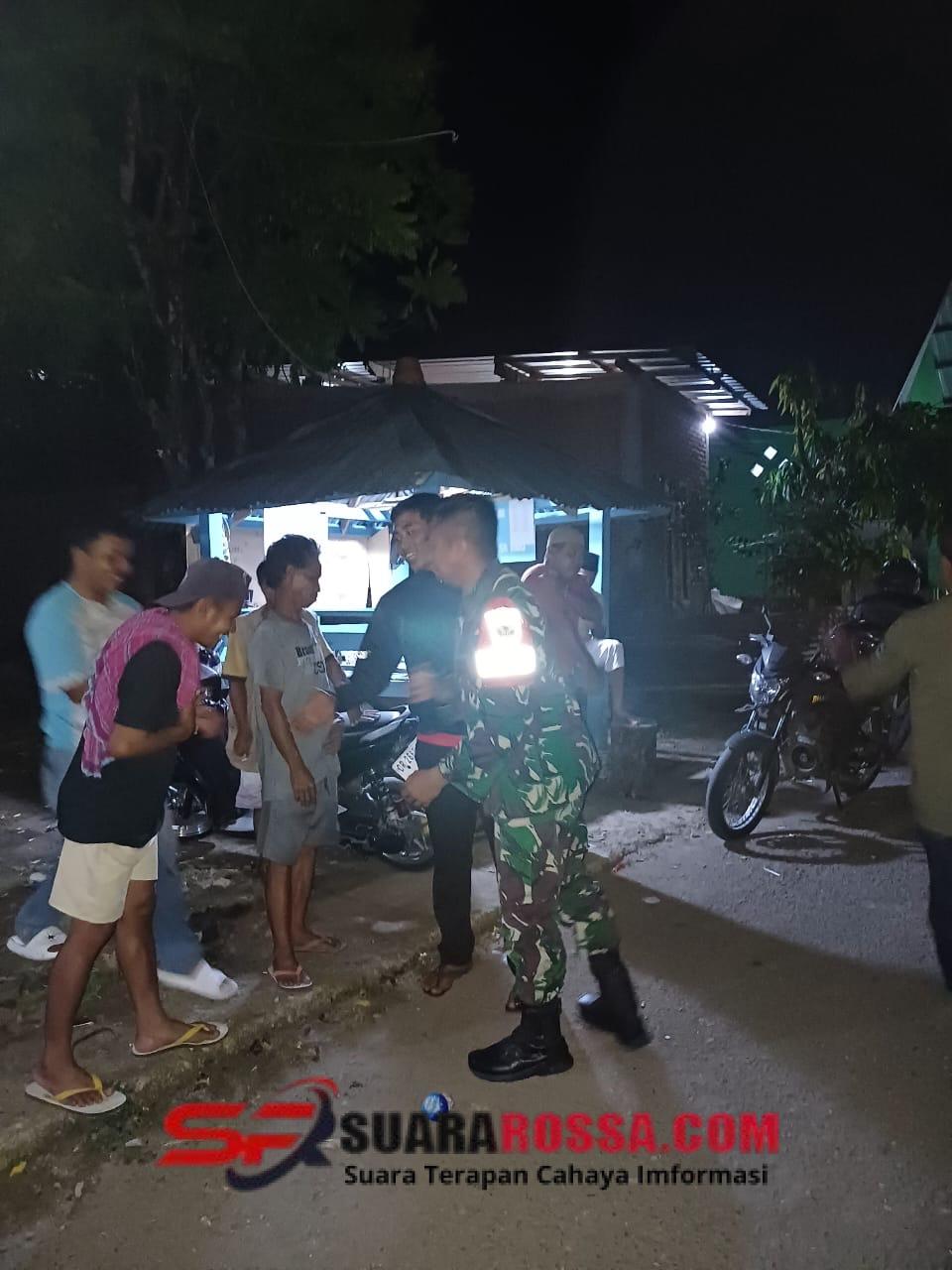 Babinsa Koramil 1614-01/Dompu Kodim 1614/Dompu, Koptu Abubakar, melaksanakan ronda malam bersama Karang Taruna dan warga di Pos Jaga Lingkungan Rasabou, Kelurahan Potu, pada pukul 21.05 WITA. Kehadiran Babinsa di tengah warga bertujuan memperkuat komunikasi serta memastikan kondisi keamanan lingkungan tetap terjaga.