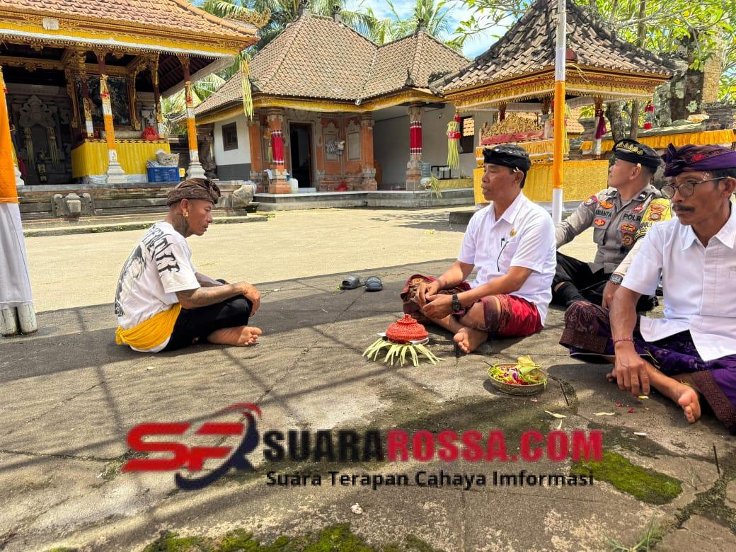 Klungkung – Babinsa Bakas Koramil 1610-02/Banjarangkan Serka Wayan Rata bersama Bhabinkamtibmas mendampingi Kades dan staf Desa Bakas melaksanakan silahturahmi ke Pura Desa Bakas, Selasa ( 02/12/25 ).