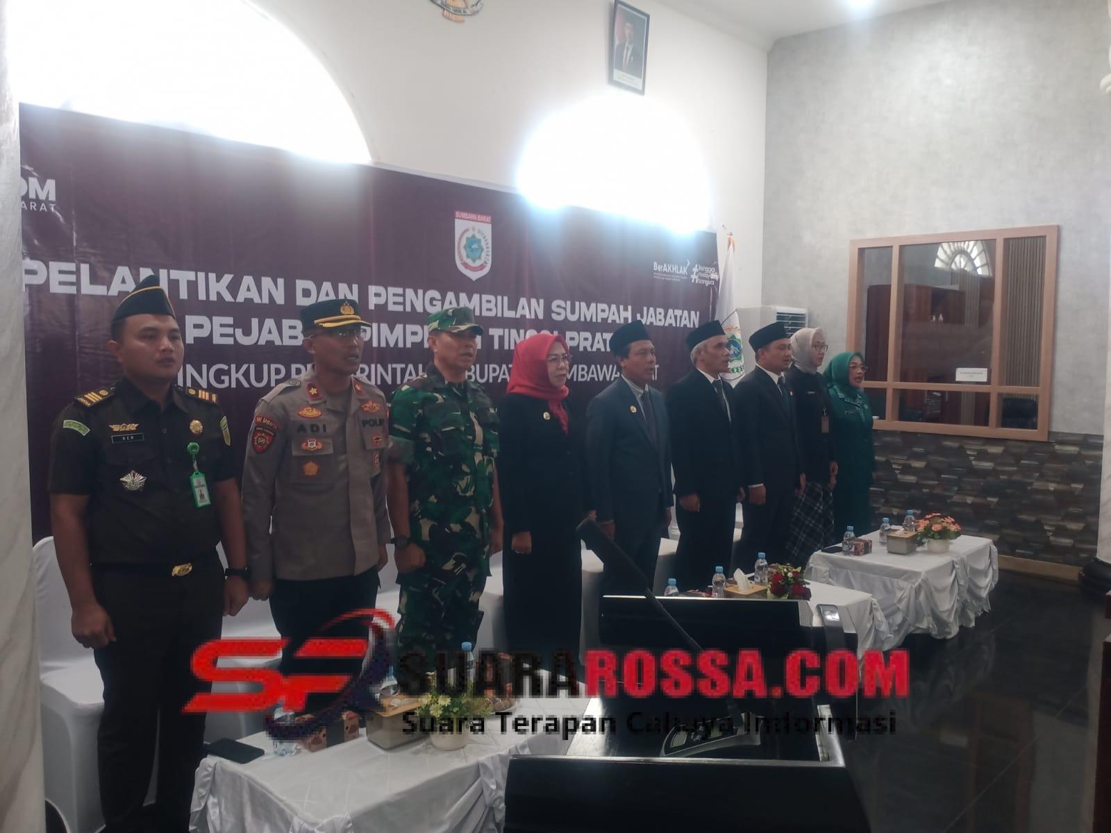 Rangkaian acara meliputi pembacaan keputusan Bupati, pengucapan sumpah jabatan, penandatanganan berita acara, penandatanganan fakta integritas, hingga menyanyikan Lagu Padamu Negeri.