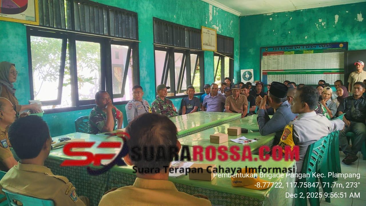Sumbawa, NTB — Anggota Koramil 1607-02/Empang yang terdiri dari Babinsa Desa Sepayung, Babinsa Desa Selante, dan Babinsa Desa Barang Kolong menghadiri kegiatan Rapat Pembentukan Brigade Pangan yang digelar di Aula Pertemuan Balai Penyuluhan Pertanian (BPP) Kecamatan Plampang, Kabupaten Sumbawa, Selasa (2/12/2025).