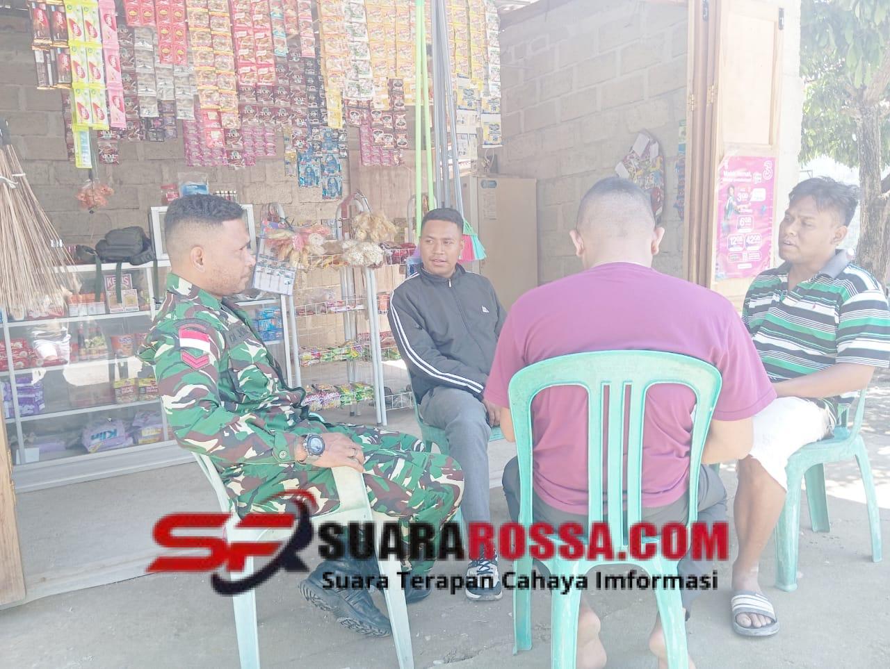 NTT-Kefamenanu., Rabu, 03 Desember 2025, Babinsa Koramil 1618-03/Insut, Koptu Natalino De Jesus, melaksanakan pemantauan wilayah di Desa Bakitolas, Kecamatan Naebenu, Kabupaten TTU. Dalam kegiatan tersebut, Babinsa berinteraksi langsung dengan warga yang sedang berkumpul di salah satu kios milik masyarakat untuk mendengarkan perkembangan situasi serta dinamika yang terjadi di lingkungan desa.