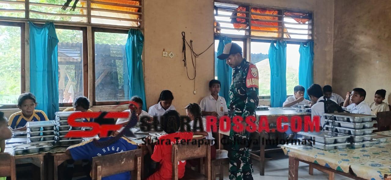 Rote Ndao – Pada hari ini Rabu, 03 Desember 2025 pukul 07.00 Wita, Babinsa Koramil 1627-01/Ba’a Pratu Jufen Taloim melaksanakan pendampingan Program Makanan Bergizi Gratis (MBG) yang berpusat di Kompleks Perkantoran Ti’i Langga Permai, Jln Lekunik, Kelurahan Mokdale, Kecamatan Lobalain, Kabupaten Rote Ndao. Program ini dilaksanakan oleh Satuan Pelayanan MBG dengan sistem pendistribusian bertahap ke 17 sekolah dan 1 titik posyandu.