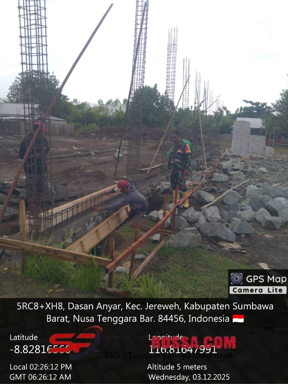 Sumbawa Barat, NTB — Babinsa Desa Dasan Anyar, Koramil 1628-04/Poto Tano, Serda Yakub, melaksanakan kegiatan pengawasan pembangunan Koperasi Merah Putih yang berlokasi di Desa Dasan Anyar, Kecamatan Jereweh Kabupaten Sumbawa Barat. Rabu (03/12/2025).