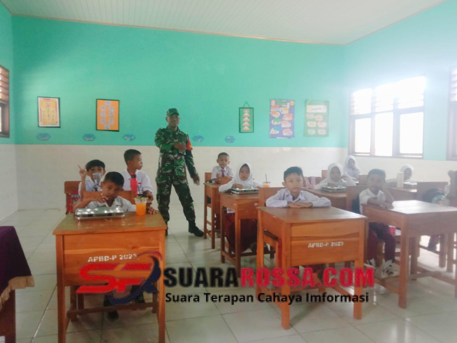 Kehadiran Babinsa bukan hanya memastikan kelancaran kegiatan, tetapi juga memberikan pengawasan agar makanan yang diberikan kepada siswa memenuhi standar gizi dan kebersihan. Dengan sigap, Sertu Ruslin membantu pihak sekolah dalam pendistribusian menu, memastikan setiap siswa menerima porsi secara merata.