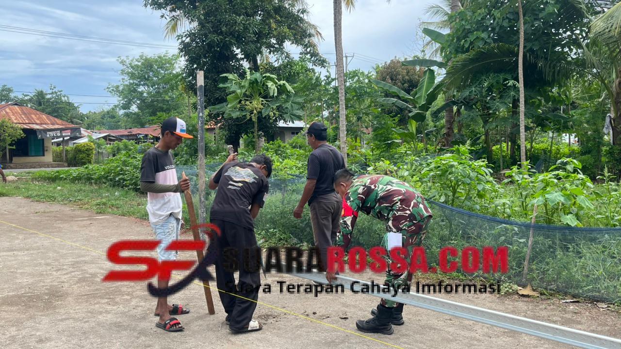 NTT-SIKKA. Danramil 1603-01/Alok Kapten Czi Sunaryo bersama Babinsa Kopda Faisal Daingtjumping melaksanakan kegiatan pematokan lahan Koperasi Desa/Kelurahan Merah Putih yang berlokasi di Jln. Raya Magepanda, Patisomba, Kelurahan Wuring, Kecamatan Alok Barat, Kabupaten Sikka.