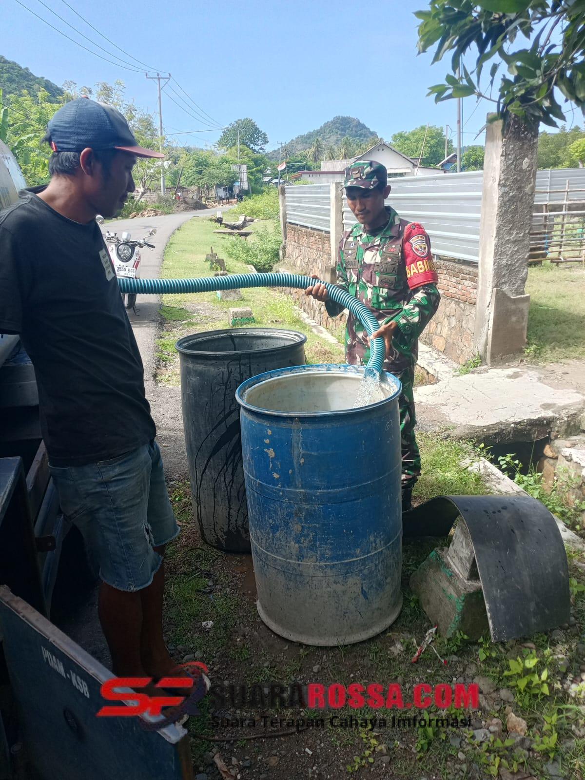 Sejak pagi, Serda Mursaha berada di lokasi untuk memastikan proses pendistribusian berjalan lancar. Ia mengatur antrean, membantu pengisian jerigen dan drum air milik warga, serta memastikan setiap keluarga mendapat bagian sesuai kebutuhan.