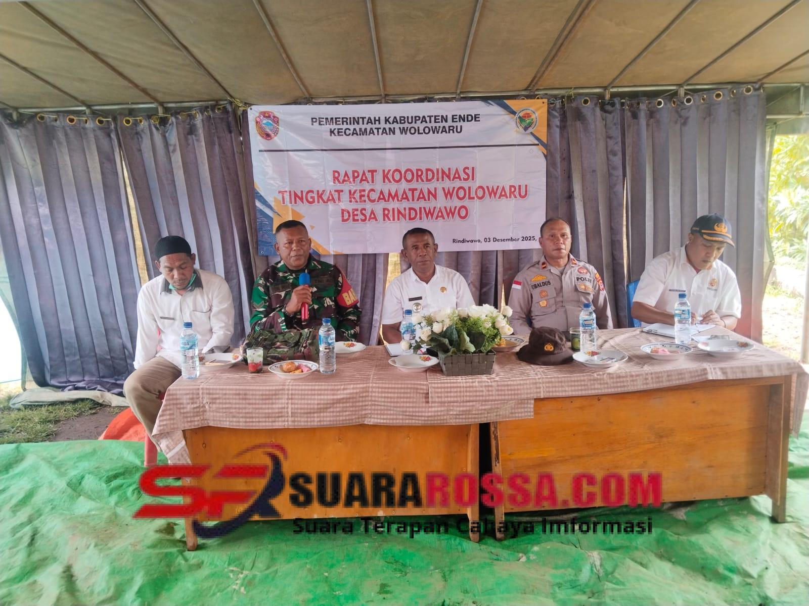 Ende, — Pemerintah Kecamatan Wolowaru menggelar Rapat Koordinasi Tingkat Kecamatan yang berlangsung di Desa Rindiwawo, Rabu (3/12). Kegiatan ini dihadiri oleh berbagai unsur pemerintahan, tokoh masyarakat, serta Babinsa Koramil 1602-02/Wolowaru, Serda Antonius Wae, yang hadir mewakili Danramil Wolowaru.