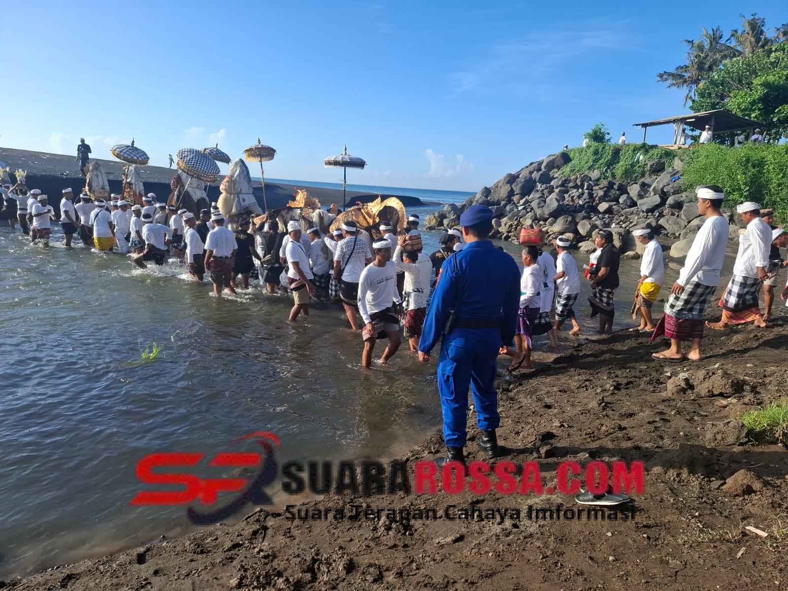 Polres Klungkung – Personel Satuan Polairud Polres Klungkung melaksanakan pengamanan kegiatan Nangluk Merana yang digelar oleh Desa Adat Tusan di kawasan Pantai Tegal Besar, Banjarangkan, Klungkung, (4/12).