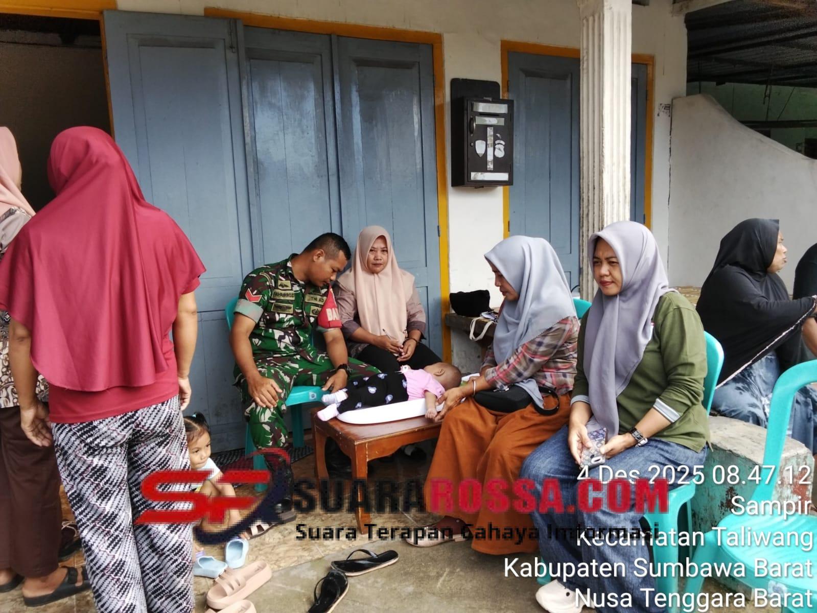 Upaya meningkatkan kualitas kesehatan masyarakat terus dilakukan oleh TNI melalui pendampingan kegiatan di wilayah. Pada Kamis, (4 Desember 2025) pukul 08.00 Wita, Babinsa Kelurahan Sampir Koramil 1628-01/Taliwang, Koptu Fahrurrozi, melaksanakan pendampingan kegiatan Posyandu Gotong Royong Sampir B, yang berlangsung di Lingkungan Sampir B, Kelurahan Sampir, Kecamatan Taliwang, Kabupaten Sumbawa Barat.