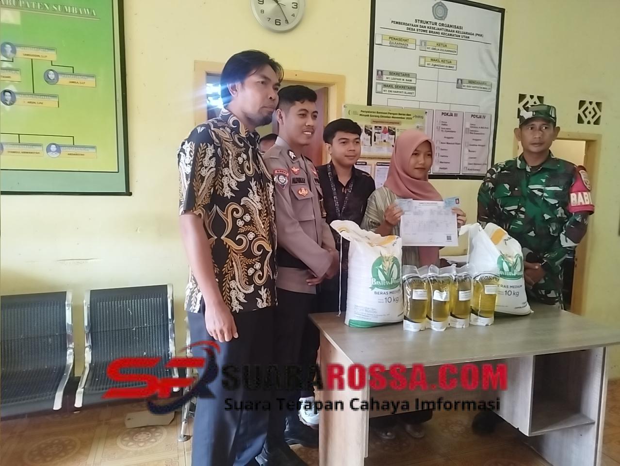 Sumbawa, NTB – Babinsa Desa Stowe Brang, Sertu Salim rudin anggota Koramil 1607-09/Utan melaksanakan tugas pendampingan dalam kegiatan penyaluran bantuan pangan berupa beras dan minyak goreng kepada warga Desa Stowe Brang, Kecamatan Utan, pada Kamis, 4 Desember 2025.