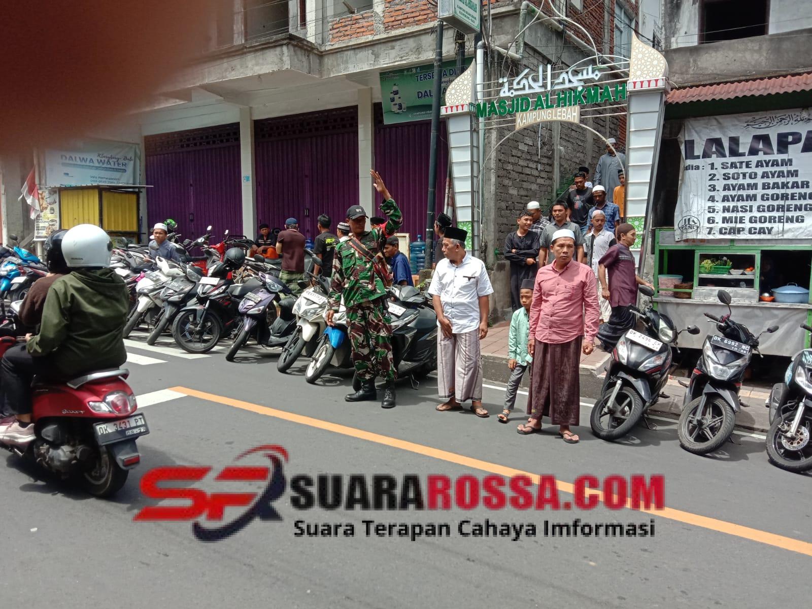 Babinsa Semarapura Kangin Serka Nyoman Suartana menyampaikan bahwa siang ini bersinergi bersama nggota Badan Keamanan Kampung ( BKK) Kampung Muslim Lebah Kelurahan Semarapura Kangin melaksanakan pengamanan untuk memastikan pelaksanaan sholat jumat aman dan lancar.
