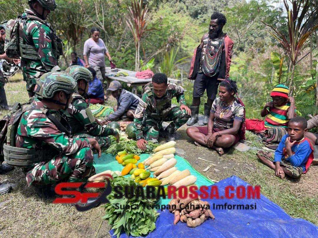 Prajurit Satgas Yonif 743/PSY Pos Merah Putih kembali menunjukkan kepedulian mereka terhadap masyarakat dengan melaksanakan kegiatan belanja kasih atau pembelian hasil bumi milik para Mama Papua di Kampung Ginnik, Distrik Mulia, Kab. Puncak Jaya, Papua, Sabtu (06/12/25).