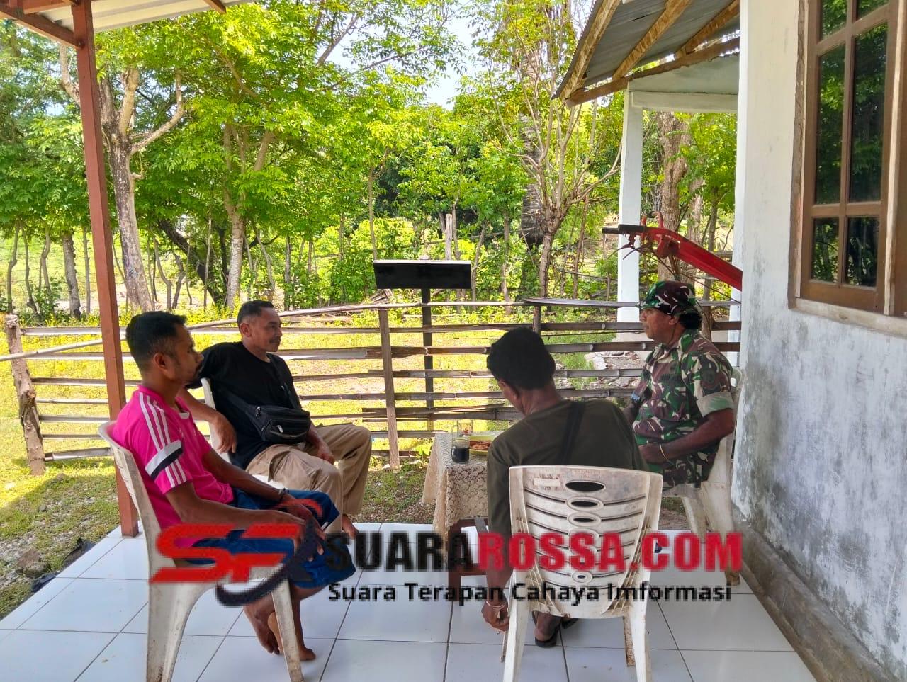 NTT-SIKKA. Babinsa Koramil 1603-05/Bola Kodim 1603/Sikka, Pratu Alfridus melaksanakan kegiatan komunikasi sosial (Komsos) bersama aparat Desa Bu...