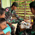 Satgas Pamtas RI–RDTL Sektor Timur Yonarmed 12 Kostrad melalui Pos Motaain melaksanakan kegiatan pelayanan kesehatan kepada masyarakat desa bi...