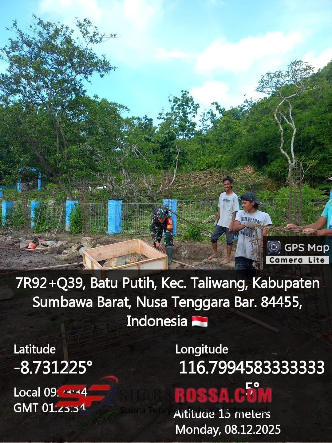 Sumbawa Barat, NTB — Anggota Koramil 1628-01/Taliwang terus menunjukkan komitmennya dalam mendukung program pembangunan di wilayah desa binaan. Babinsa Desa Batu Putih, Serda Edison, melaksanakan pendampingan proses pengecoran keliling cakar ayam pada pembangunan Kantor Desa Kesiapsiagaan Masyarakat dan Pemerintahan (KDKMP) di Desa Batu Putih, Kecamatan Taliwang, Kabupaten Sumbawa Barat.