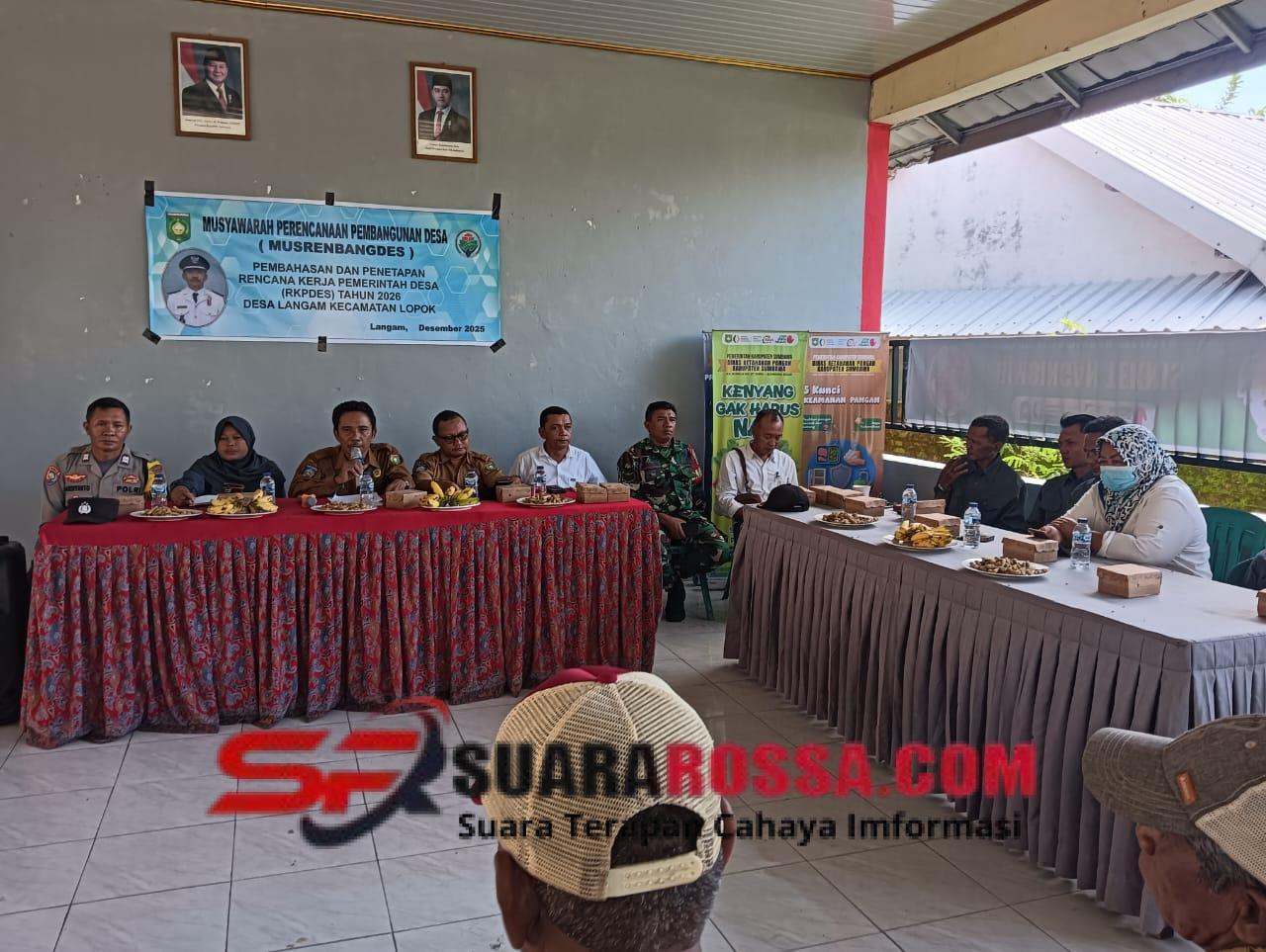 “Musrenbangdes ini menjadi momentum penting untuk menyusun rencana pembangunan yang benar-benar dibutuhkan masyarakat. TNI siap mendukung demi terwujudnya kesejahteraan warga Desa Langam,” ujar Babinsa.