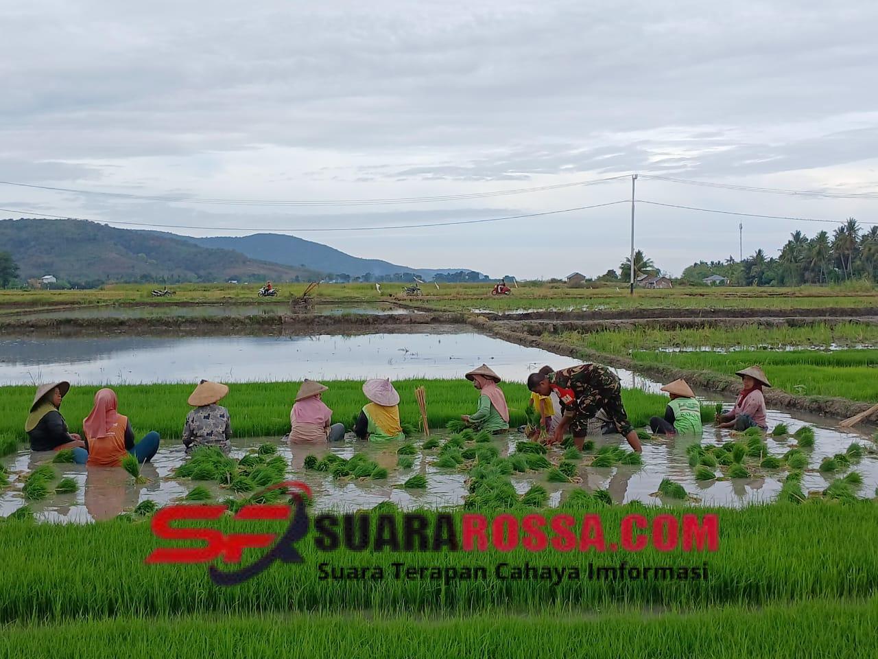 Kopda Suhardiman tidak hanya memastikan proses penanaman padi berjalan rapi dan tepat waktu, tetapi juga memberikan dorongan semangat agar petani konsisten merawat tanaman demi hasil panen yang maksimal. Pendampingan ini sekaligus menjadi momen strategis untuk memperkuat komunikasi dan silaturahmi antara Babinsa dan warga setempat.