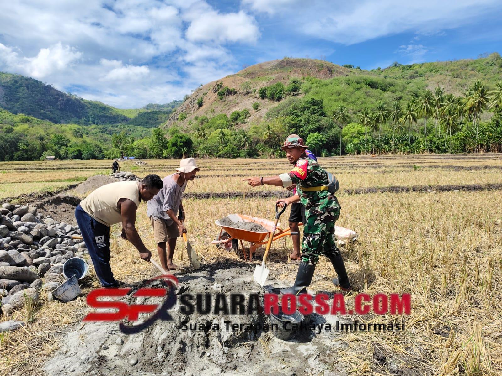 Kegiatan tersebut tidak hanya berfokus pada pemantauan keamanan, tetapi juga melibatkan bantuan langsung kepada masyarakat. Babinsa, Serda La Woe Buton, bersama kelompok tani Bobi Usaha, turut membantu pengerjaan saluran irigasi untuk mendukung kegiatan pertanian desa.