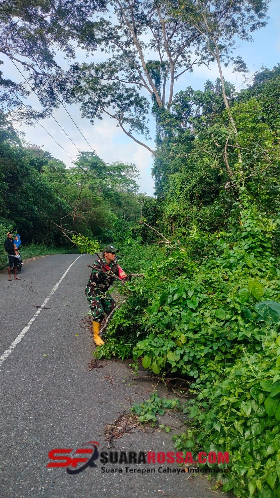 “Kami melihat jalan tertutup sebagian oleh ranting dan semak, sehingga segera kami bersihkan agar tidak membahayakan pengendara lain,” ujar salah satu Babinsa di lokasi.