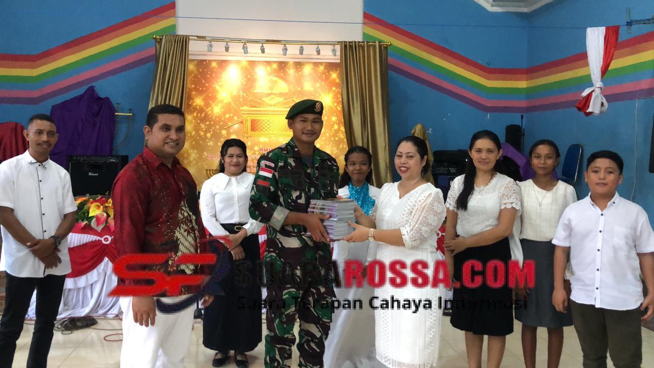 Belu – Satgas Pamtas RI–RDTL Sektor Timur Yonarmed 12 Kostrad Pos Auren melaksanakan kegiatan pembagian buku Natal dan Alkitab kepada jemaat di Gereja GBI Betun, Wehali, Kecamatan Malaka Tengah, Kabupaten Belu, Nusa Tenggara Timur. Kegiatan ini menjadi wujud kepedulian Satgas dalam mendukung kegiatan keagamaan masyarakat di wilayah perbatasan.
