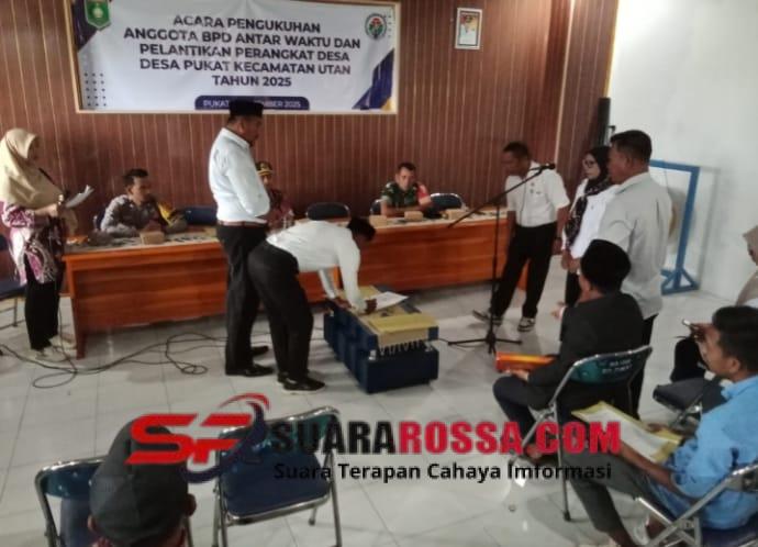 ‎Pelantikan Anggota BPD dikukuhkan oleh perwakilan Camat Utan, sementara itu pelantikan Perangkat Desa dikukuhkan oleh Kepala Desa Pukat. Selain itu dilakukan Pengucapan sumpah jabatan Anggota BPD dan Perangkat Desa yang dipandu oleh Rohaniawan Ustadz Ashadu