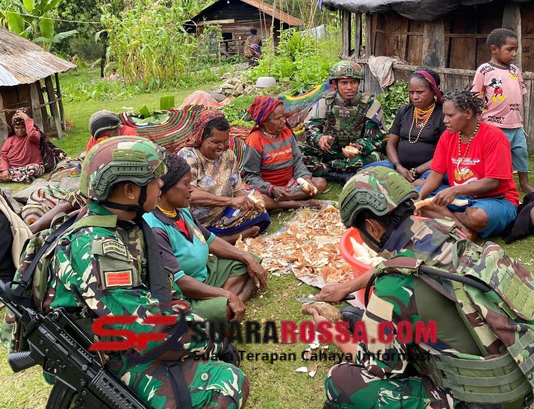 Puncak Jaya – Satgas Pamtas RI-PNG Kewilayahan Yonif 743/PSY Pos Muliambut turut berpartisipasi dalam acara Bakar Batu, tradisi luhur masyarakat Papua yang sarat makna kebersamaan, di Lapangan Galilea, Kampung Wuyukwi, Distrik Mulia, Kabupaten Puncak Jaya, Kamis (11/12/25).