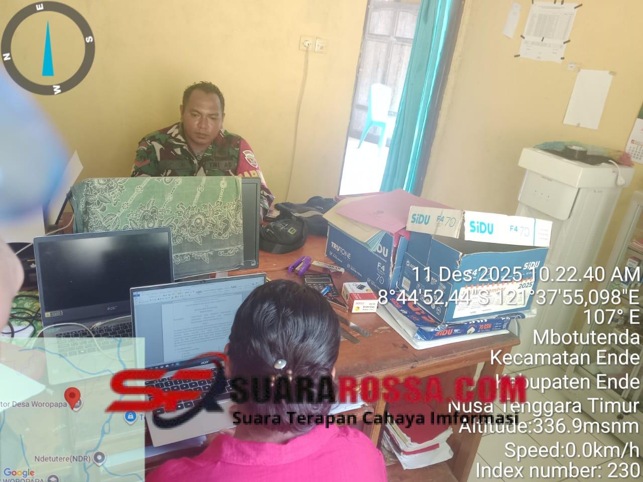 Ende, – Babinsa Koramil 1602-01/Ende melaksanakan kegiatan komunikasi sosial (Komsos) dan pembaruan data Geo Demo di Kantor Desa Woropapa, Kecamatan Ende, Kabupaten Ende, Rabu siang. Kegiatan ini bertujuan untuk memperkuat hubungan antara TNI dan masyarakat serta mendukung pembangunan desa melalui pendataan yang akurat.