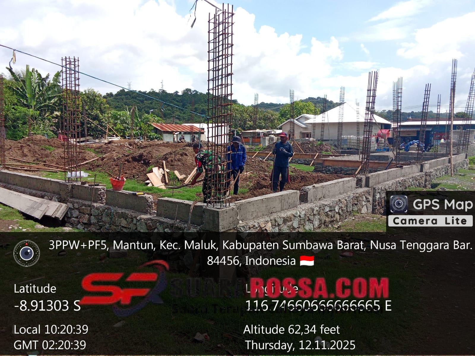 Sumbawa Barat, NTB – Upaya percepatan pembangunan fasilitas publik terus mendapat dukungan penuh dari jajaran Kodim 1628/Sumbawa Barat. Babinsa Koramil 1628-02/Sekongkang, Sertu Ahmad Yani, melaksanakan pendampingan dan monitoring pembangunan Kawasan Desa Mandiri Pangan (KDMP) di Desa Mantun, Kecamatan Maluk, Kabupaten Sumbawa Barat.