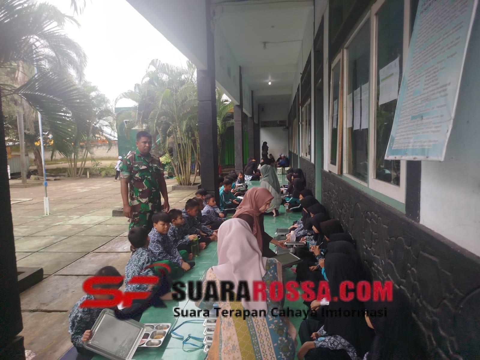 Pendampingan ini bertujuan memastikan program berjalan lancar, tertib, dan tepat sasaran. Sejak pukul 08.00 Wita, Babinsa turut mengawasi proses distribusi makanan hingga memastikan siswa menerima paket menu makan bergizi yang telah disiapkan.
