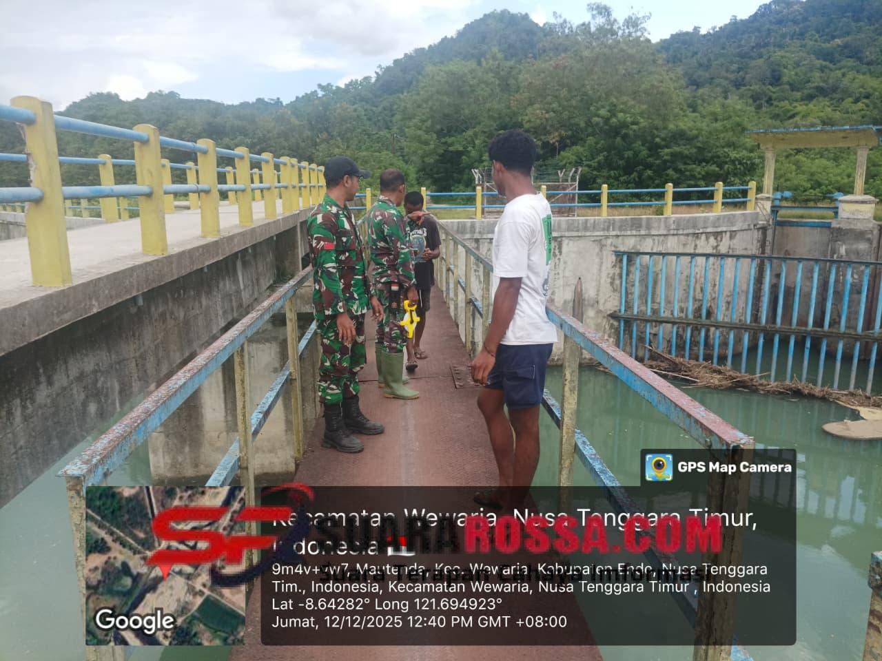 Ende – Dalam rangka mendukung pendataan wilayah dan membantu kebutuhan masyarakat di wilayah binaan, Babinsa Koramil 1602-03/Detusoko melaksanakan kegiatan peninjauan debit air Bendungan Mautenda sekaligus pengecekan jaringan irigasi di Desa Mautenda, Kecamatan Wewaria, Kabupaten Ende, Jumat (12/12/2025).