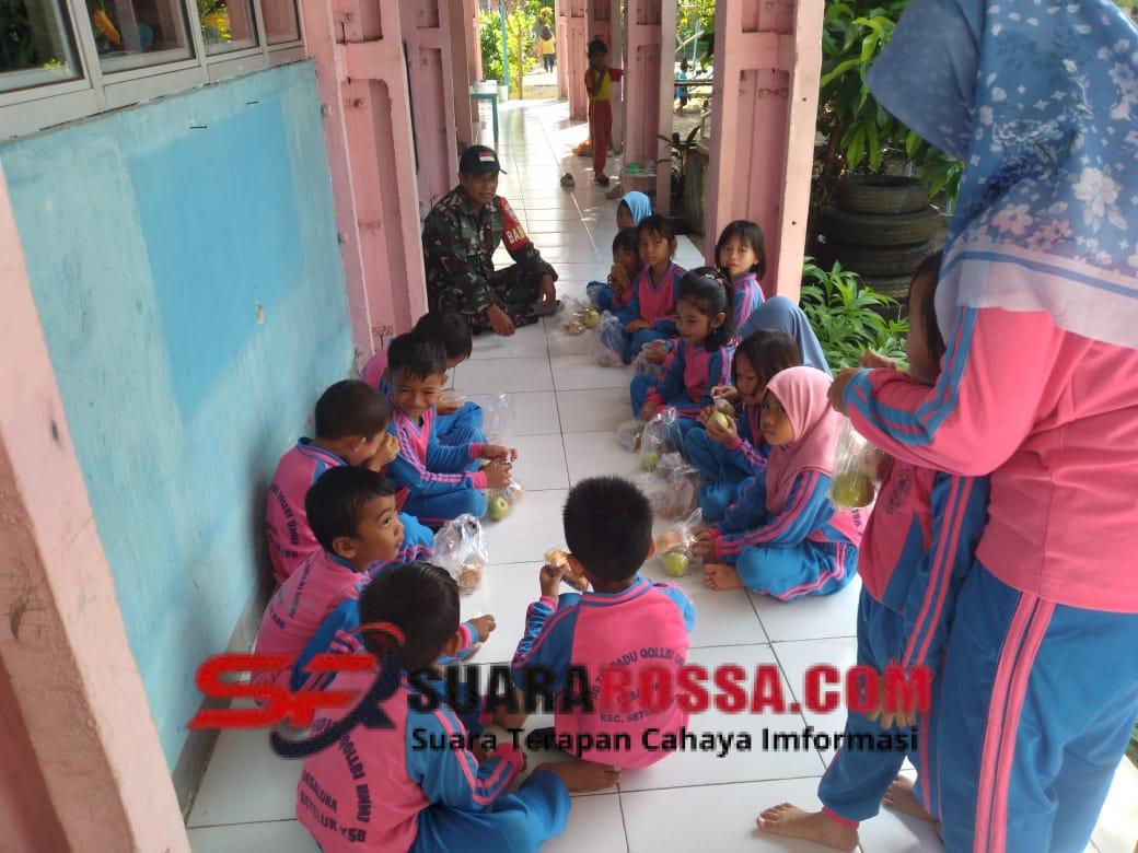 Sumbawa Barat, NTB – Dalam rangka mendukung program pemerintah di bidang peningkatan gizi anak usia dini, Babinsa Desa Desaloka Koramil 1628-03/Seteluk, Sertu Sayuti, melaksanakan pendampingan Program Makan Bergizi Gratis (MBG) di TK Qollbi Ummi, Desa Desaloka, Kecamatan Seteluk, Kabupaten Sumbawa Barat, Sabtu (13/12/2025).