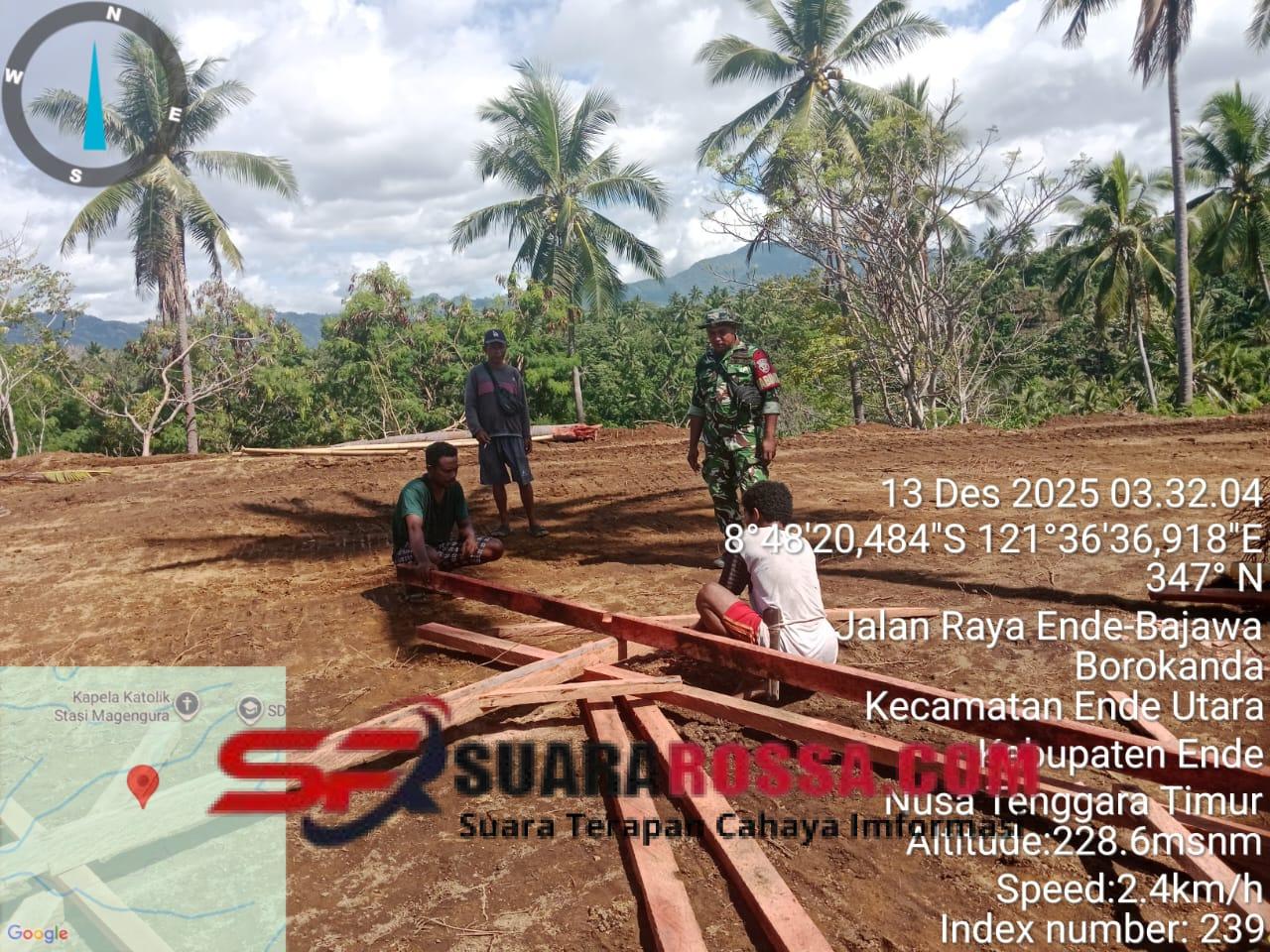 Babinsa Koramil 1602-01/Ende Kopda Kosmas Kerhi turun langsung ke lapangan untuk memastikan seluruh tahapan pekerjaan berjalan sesuai rencana, aman, dan tepat sasaran. Dalam kegiatan tersebut, Babinsa juga berkoordinasi dengan pengawas lapangan dari tim teknis serta para pekerja bangunan.