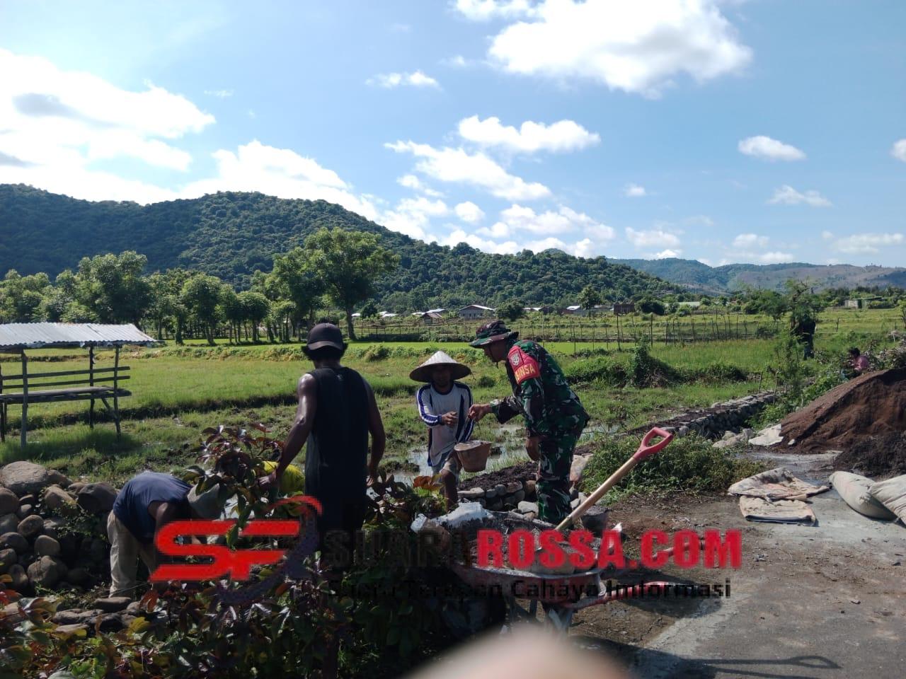 Huu, NTB – Babinsa Desa Rasabou, Serda Yahya, anggota Koramil 1614-03/Huu Kodim 1614/Dompu, membantu warga binaan dalam pembuatan talut irigasi di Jalan Paja Karya, Minggu (14/12/2025) pukul 10.00 WITA. Kehadiran Babinsa di lokasi bertujuan untuk mendukung pembangunan infrastruktur yang bermanfaat bagi masyarakat.