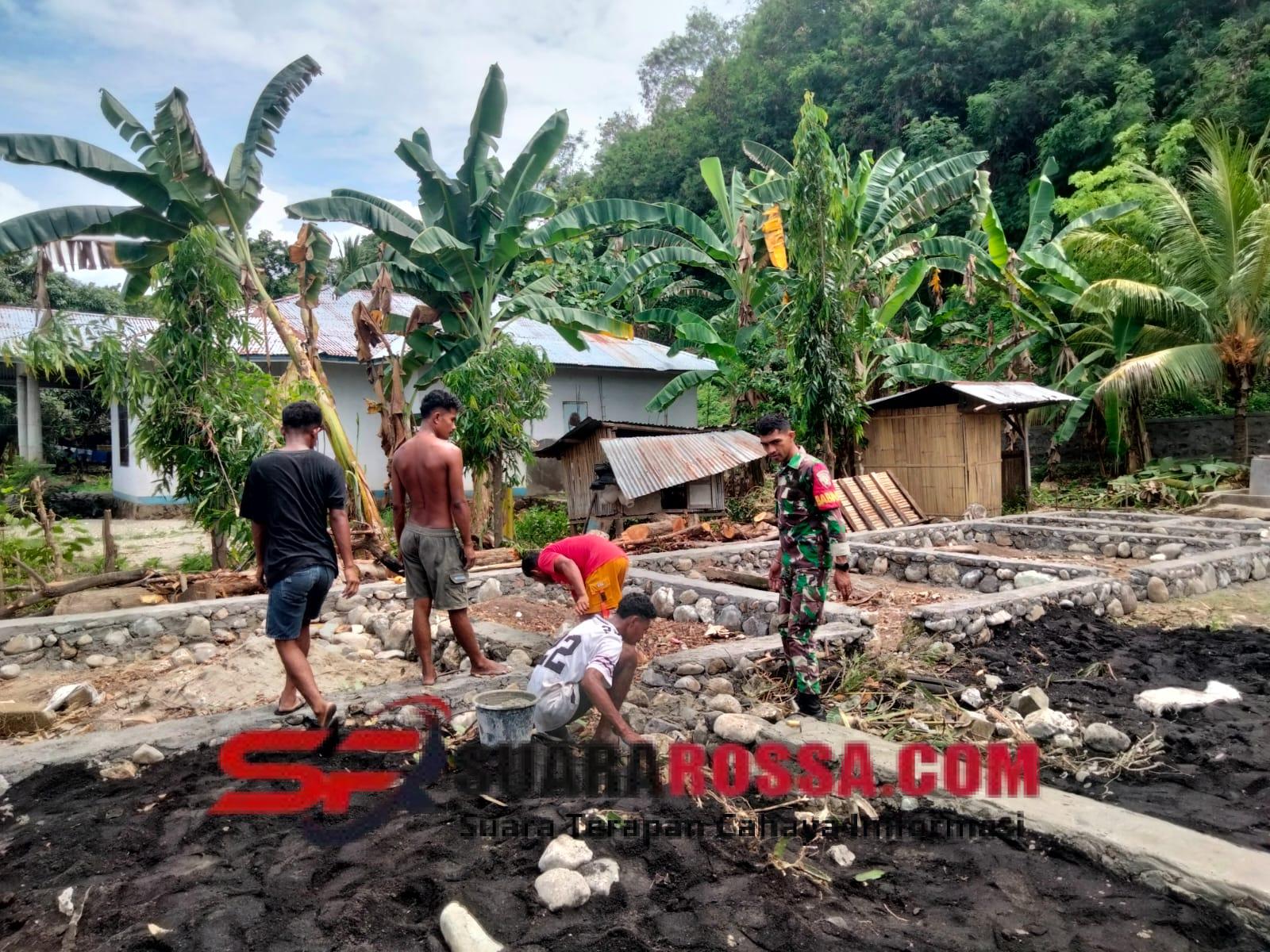 Babinsa Koramil 1602-04/Maurole Pratu Paskalis Raja turun langsung ke lapangan bersama warga Desa Mausambi untuk membantu proses awal pembangunan rumah. Selain bekerja bersama masyarakat, Babinsa juga melakukan pemantauan situasi dan kondisi keamanan wilayah desa agar tetap aman dan kondusif.