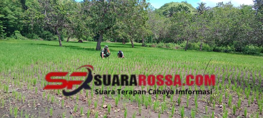 NTT – Sumba Timur. Babinsa Koramil 04/Tabundung jajaran Kodim 1601/Sumba Timur, Sertu Ejiman, melaksanakan pendampingan ketahanan pangan (Hanpangan) dengan membantu warga mencabut rumput liar pada tanaman padi di lahan sawah tadah hujan yang berlokasi di Desa Billa, Kecamatan Tabundung, Kabupaten Sumba Timur, Minggu (14/12/2025).