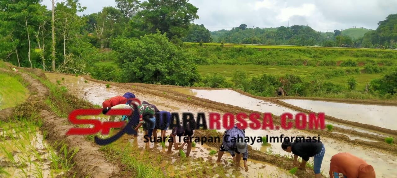 SUMBA BARAT – Babinsa Koramil 01/Loli Kodim 1613/Sumba Barat, Sertu Silas Kikhau, melaksanakan komunikasi sosial (Komsos) dengan warga yang sedang menanam padi di area persawahan Desa Ubu Raya, Kecamatan Loli, Kabupaten Sumba Barat, Minggu (14/12/2025).
