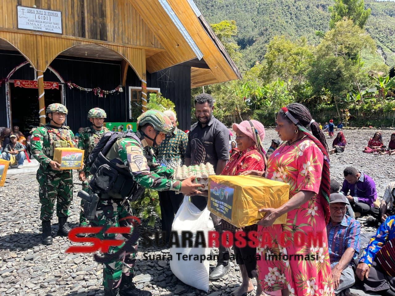 Dalam rangka menyambut Hari Raya Natal 2025, Satgas Yonif 743/PSY menghadirkan kebahagiaan dan sukacita Natal bagi masyarakat Kampung Pruleme dengan menyerahkan pohon Natal, bingkisan Natal, serta Alkitab kepada Jemaat Gereja GIDI Klasis Mulia Wilayah Yamo Jemaat Galilea, Minggu (14/12/2025).