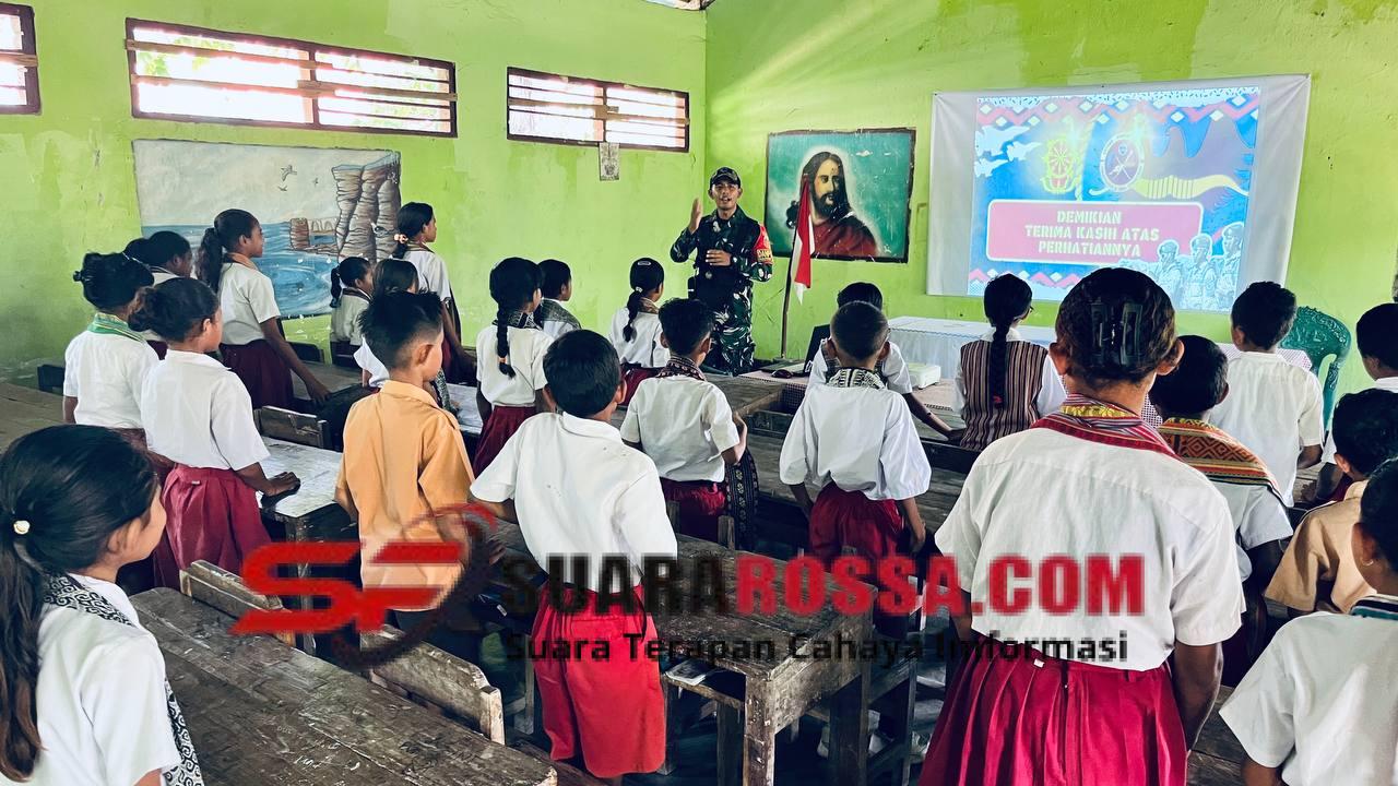 Napan – Satgas Pamtas RI-RDTL Sektor Barat Yonarhanud 2 Kostrad Pos Napan Bawah menggelar kegiatan Penyuluhan Pendidikan Wawasan Kebangsaan dan Bela Negara yang dilaksanakan di SD Katolik Tes, Desa Napan, Kec. Bikomi Utara, Kab. TTU. Senin (15/12)