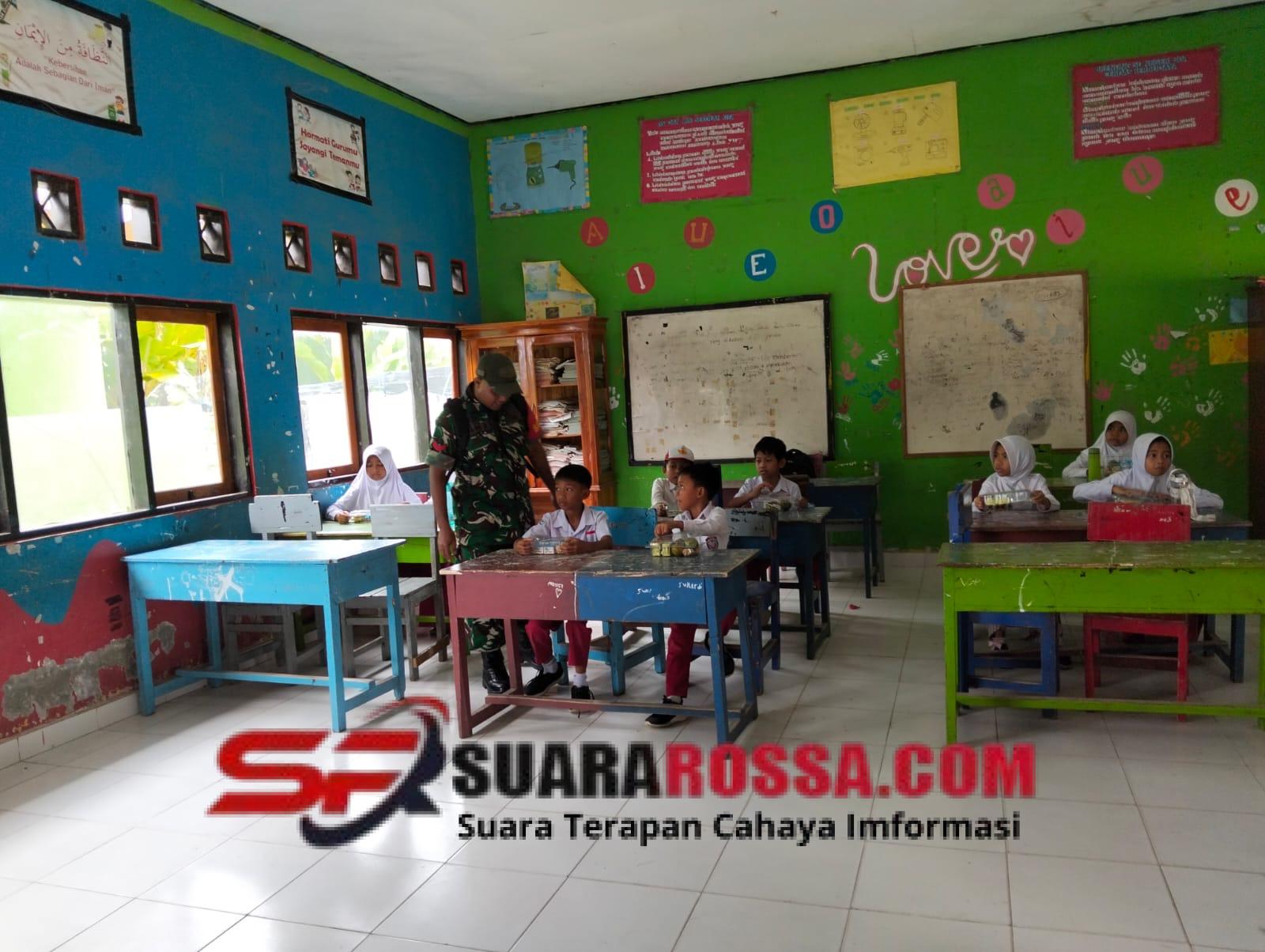 Sumbawa Barat, NTB – Anggota Koramil 1628-05/Jereweh, Babinsa Desa Goa Koptu Agus Dermawan, melaksanakan pendampingan kegiatan Program Makan Bergizi Gratis (MBG) di SD Negeri Goa, Desa Goa, Kecamatan Jereweh, Kabupaten Sumbawa Barat, Selasa (16/12/2025).