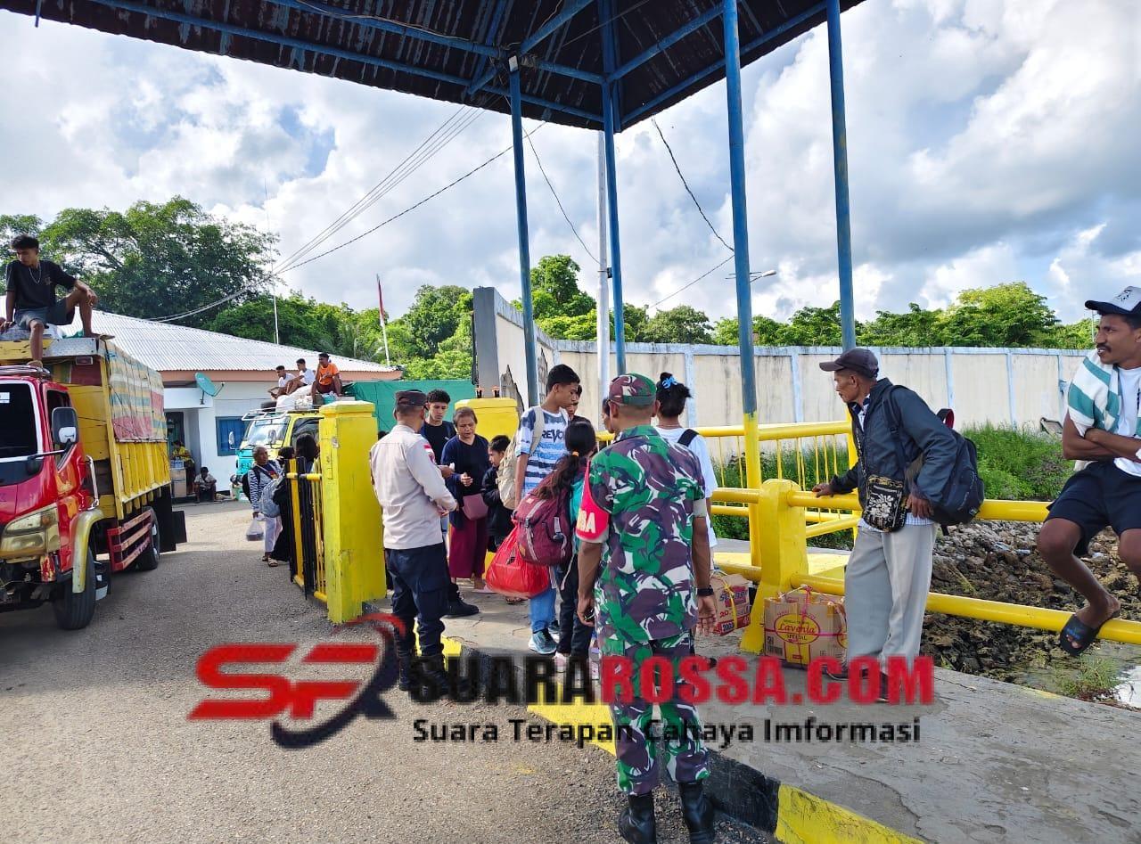 Rote Ndao – Babinsa Koramil 1627-02/Pantai Baru, Sertu Apriadi Lonowata, selaku petugas piket melaksanakan kegiatan pemantauan pengangkutan penumpang, kendaraan, dan barang di Pelabuhan ASDP Pantai Baru, Desa Ofalangga, Kecamatan Pantai Baru, Kabupaten Rote Ndao.