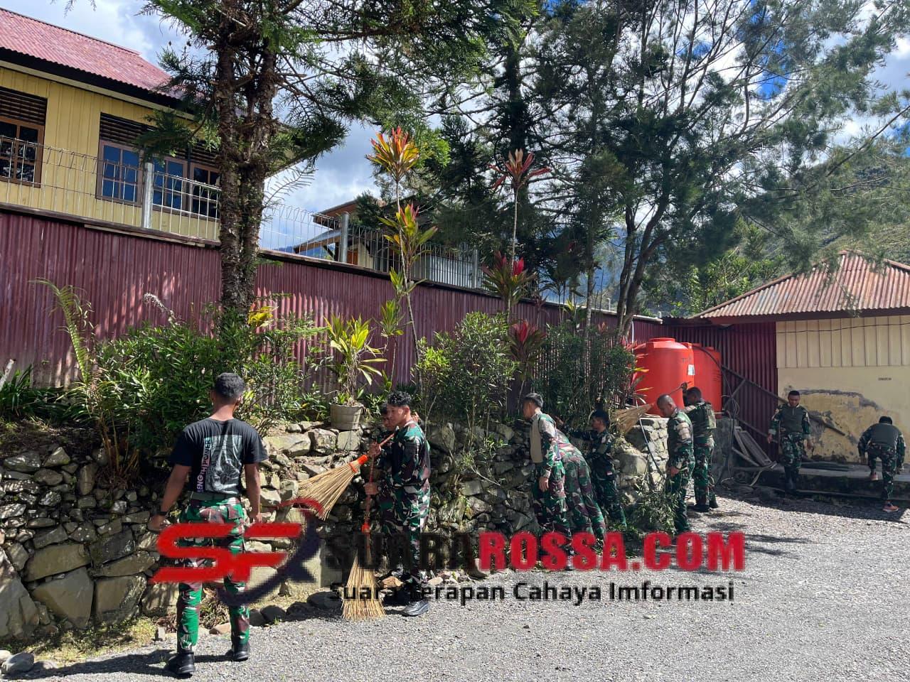 Dalam rangka menyambut Hari Ulang Tahun (HUT) Brigif 21/Komodo ke-16 sekaligus menyongsong Hari Raya Natal 2025, Satgas Yonif 743/PSY melaksanakan kegiatan karya bakti bersama masyarakat di Gereja Santo Petrus Mulia, Distrik Mulia, Kab. Puncak Jaya, Papua, Minggu (14/12/2025).