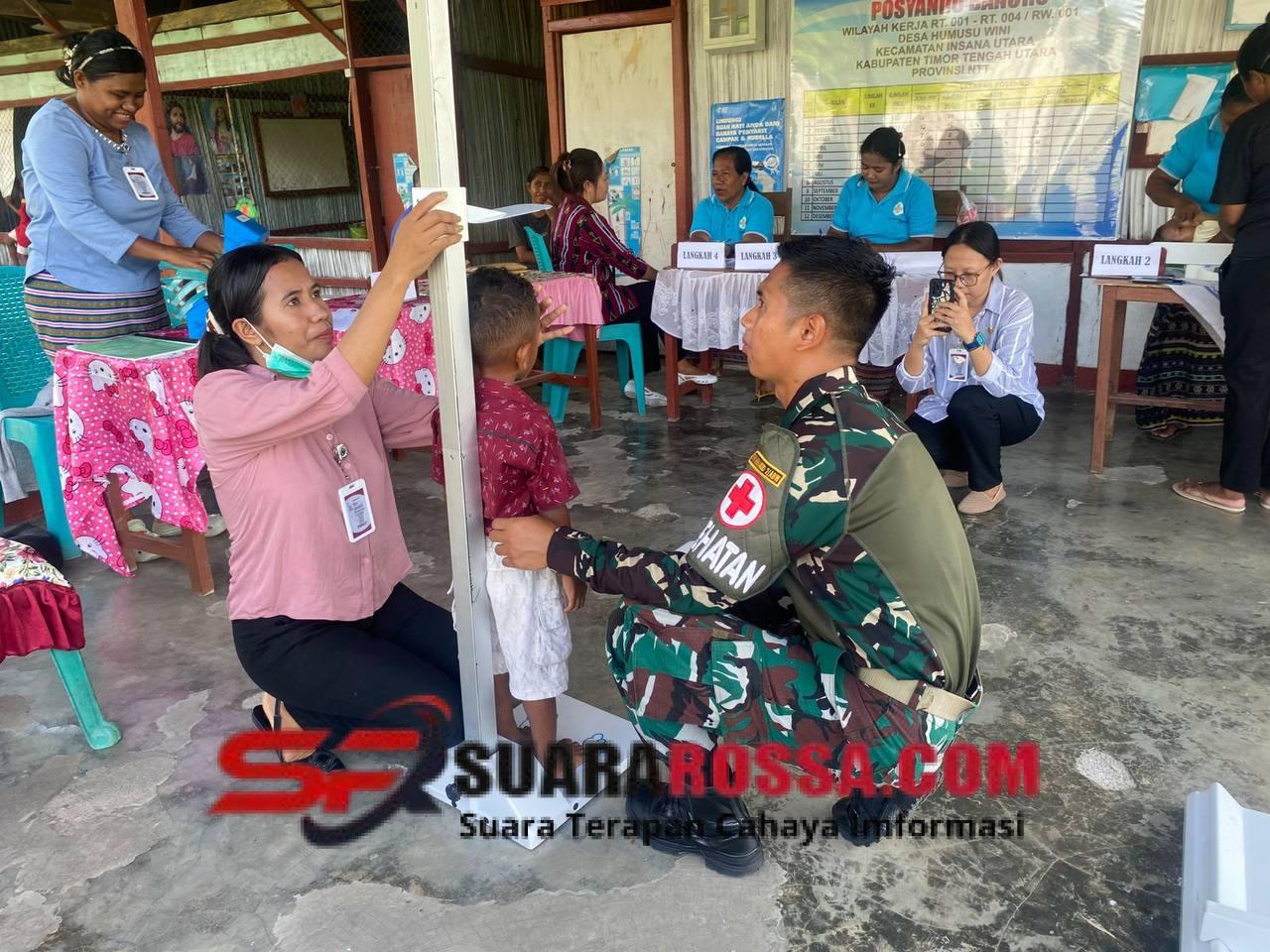Wini – Satgas Pamtas RI–RDTL Sektor Barat Yonarhanud 2 Kostrad Pos Wini kembali menunjukkan kepedulian terhadap kesehatan masyarakat perbatasan khususnya balita, dengan melaksanakan kegiatan Posyandu bersama warga di Desa Wini, Kec. Insana Utara, Kab. TTU. Senin (15/12)