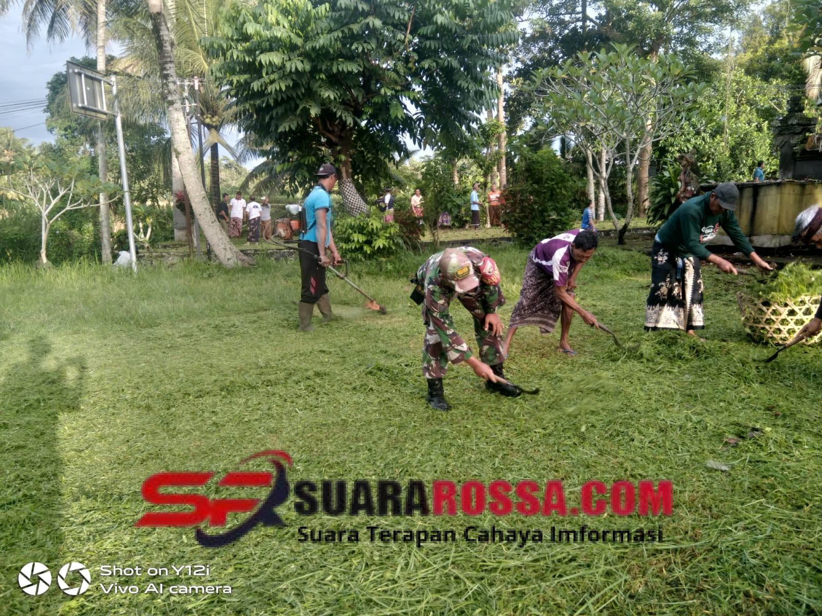 • Wujud Kebersamaan TNI dan Masyarakat, Babinsa Jegu Gotong Royong di Pura Desa Jegu