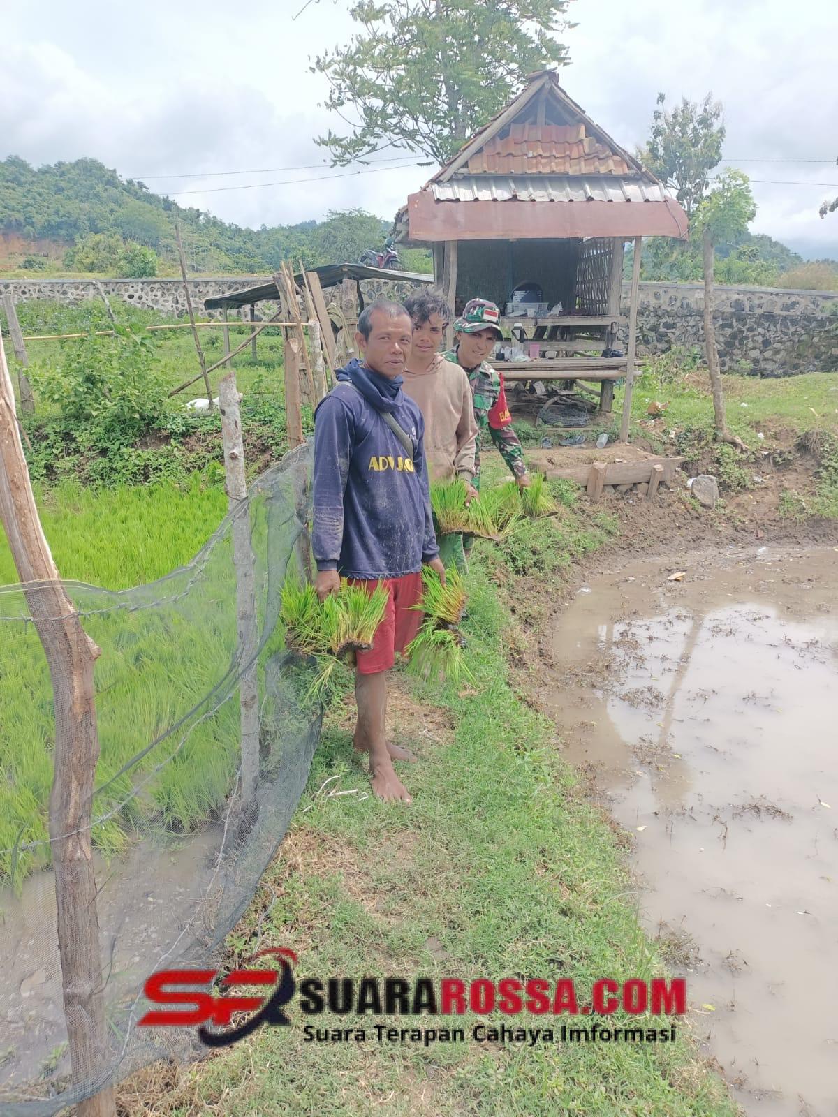 Sumbawa Barat, NTB – Dalam rangka mendukung program ketahanan pangan nasional, Babinsa Persiapan Seteluk Rea Koramil 1628-03/Seteluk, Serda Muhamad Hidir, melaksanakan kegiatan komunikasi sosial (komsos) sekaligus pendampingan kepada petani dalam kegiatan penanaman padi di wilayah binaannya.