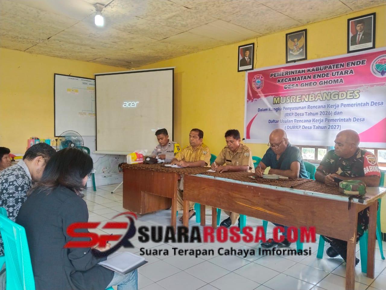 Ende Utara – Pemerintah Desa Gheoghoma, Kecamatan Ende Utara, Kabupaten Ende, menggelar Musyawarah Perencanaan Pembangunan Desa (Musrenbangdes) dalam rangka penyusunan Anggaran Pendapatan dan Belanja Desa (APBDes) Tahun 2026 serta Daftar Usulan Rencana Kerja Pemerintah Desa (DU RKPDes) Tahun 2027, bertempat di Aula Kantor Desa Gheoghoma, Selasa (16/12/2025).