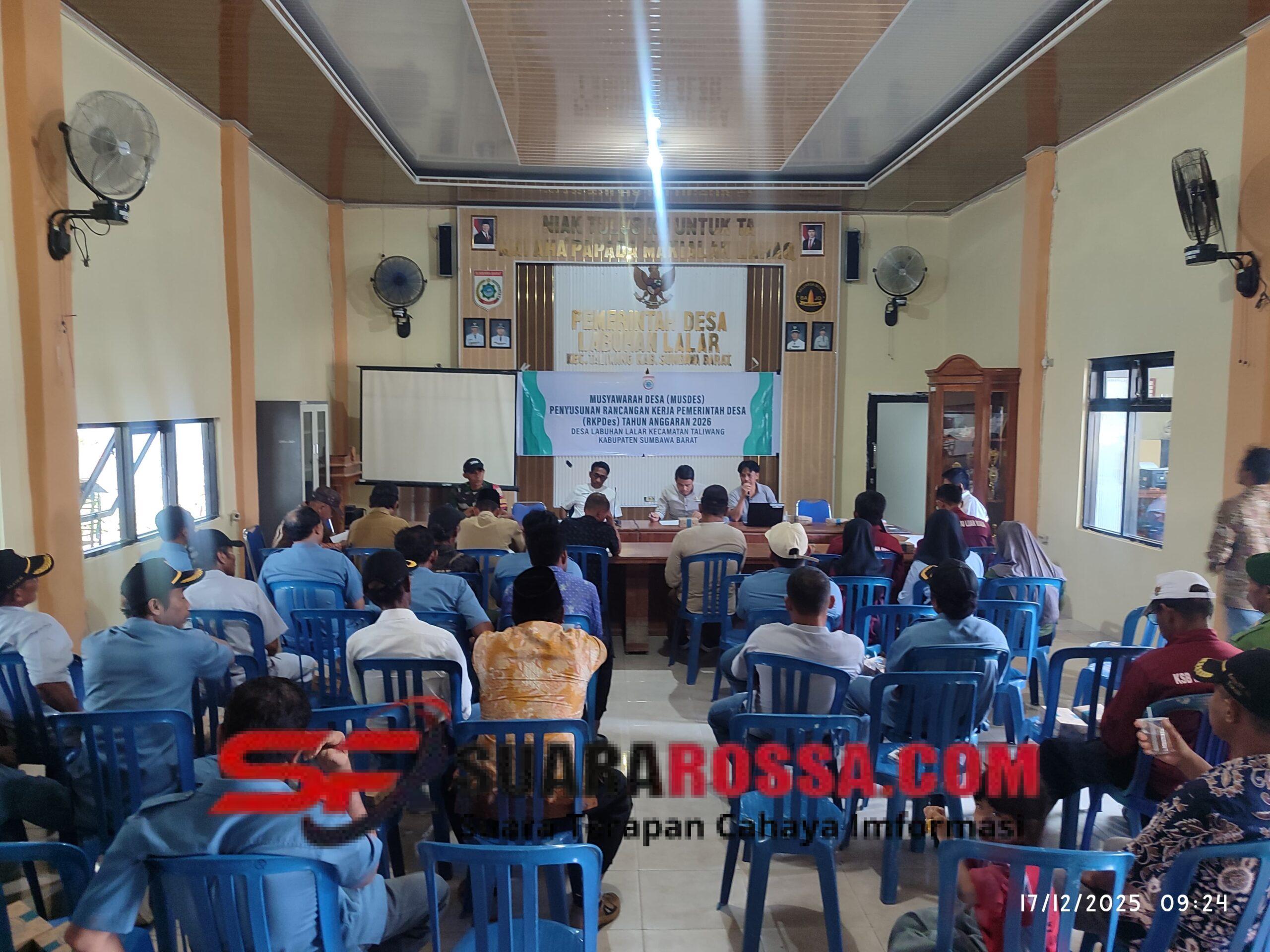 Sumbawa Barat , NTB– Babinsa Desa Labuhan Lalar, Koramil 1628-01/Taliwang, Serda Suaedin Barat melaksanakan pendampingan kegiatan Rapat Musyawarah Desa (Musdes) dan Penyusunan Rencana Kerja Pemerintahan Desa (RKPDes) Tahun Anggaran 2026. Kegiatan tersebut berlangsung pada Selasa (17/12/2025) pukul 08.30 WITA di Aula Kantor Desa Labuhan Lalar, Kecamatan Taliwang, Kabupaten Sumbawa Barat.